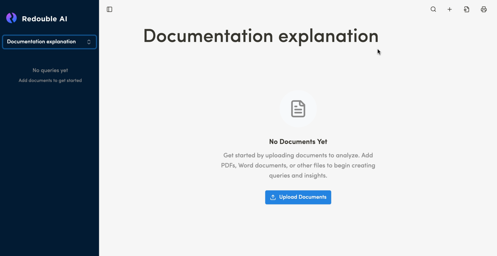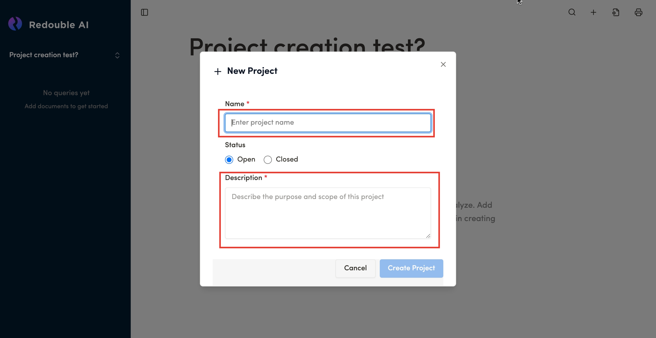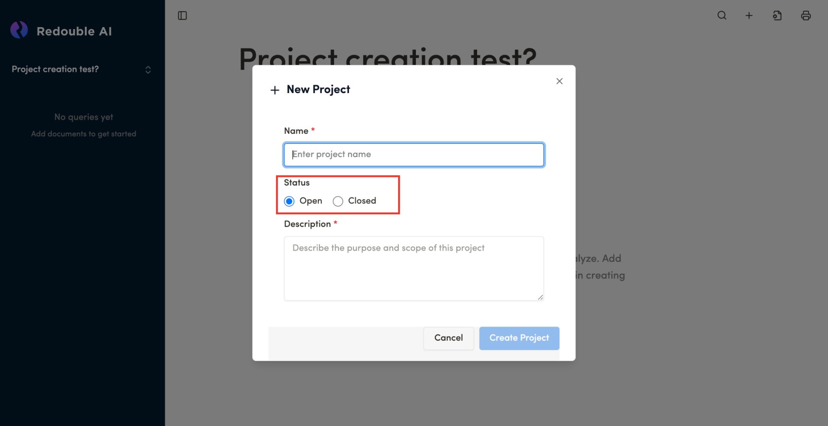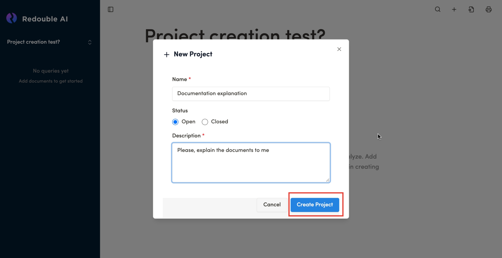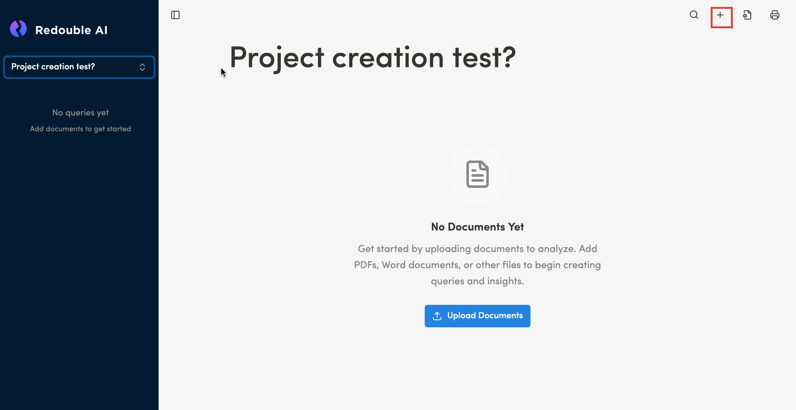 Result: The project is created and automatically opened for work. You will be redirected to the project's main page where you can add documents and create questions for analysis.