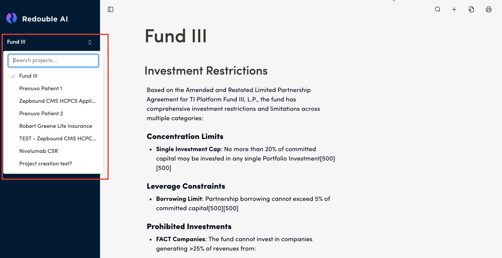 You have switched to the selected project. The project's main page will open with all its questions and documents.
