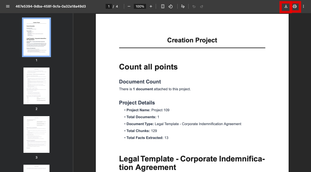 - In the top toolbar, click on the printer icon "Print Document"