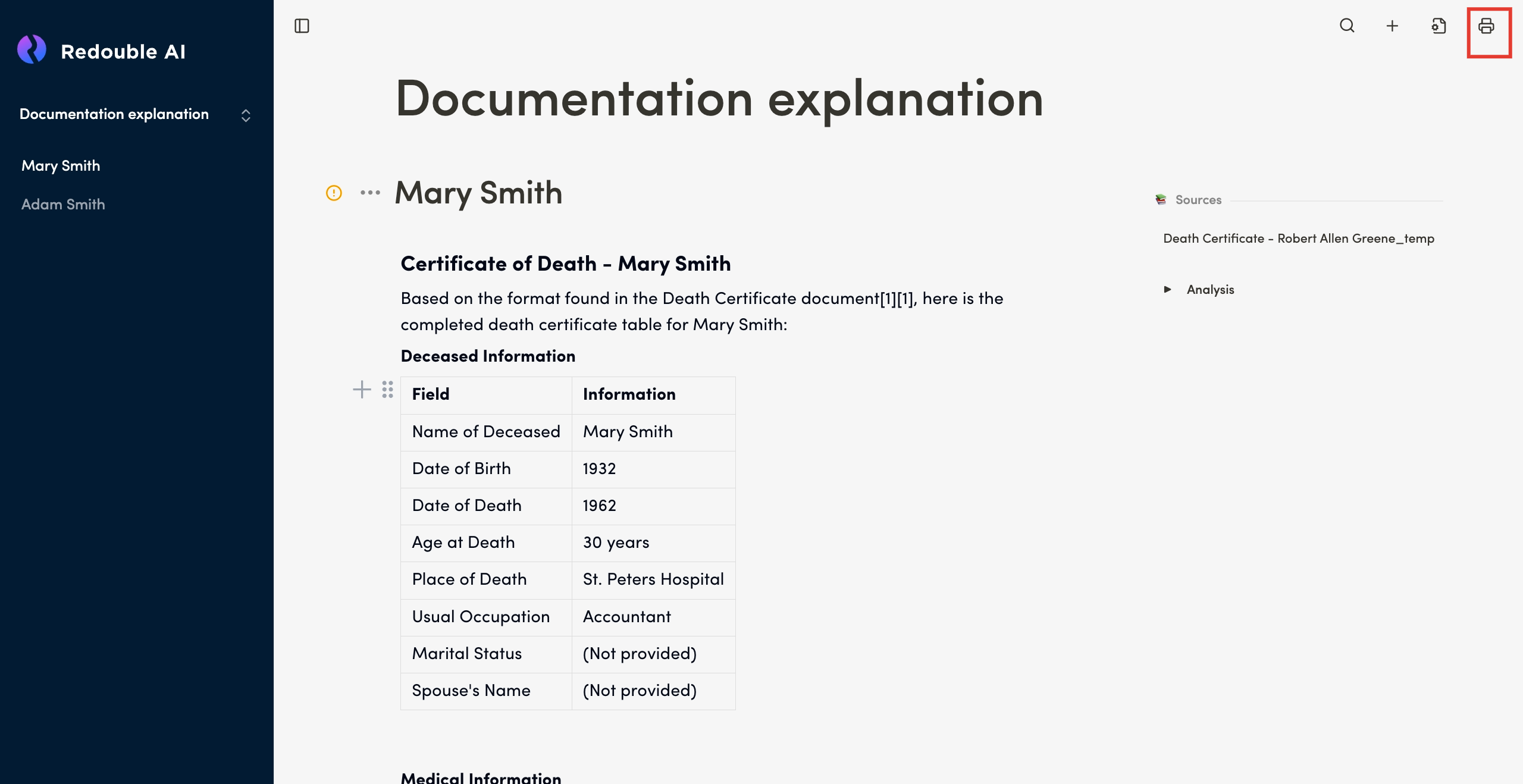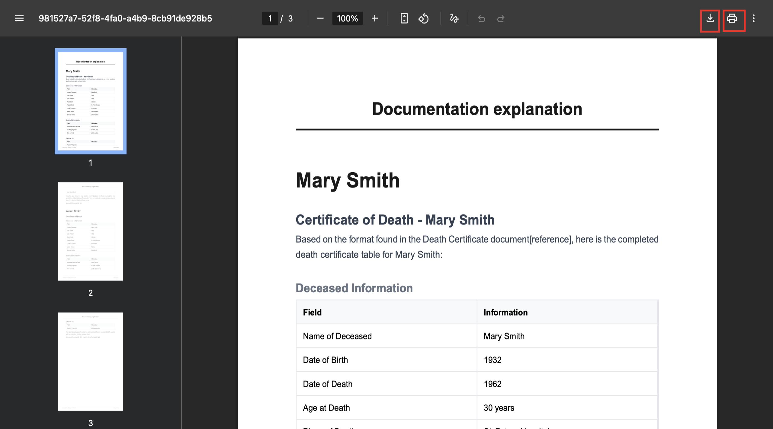 Result: The section or document has been printed or saved as a PDF file to your computer.