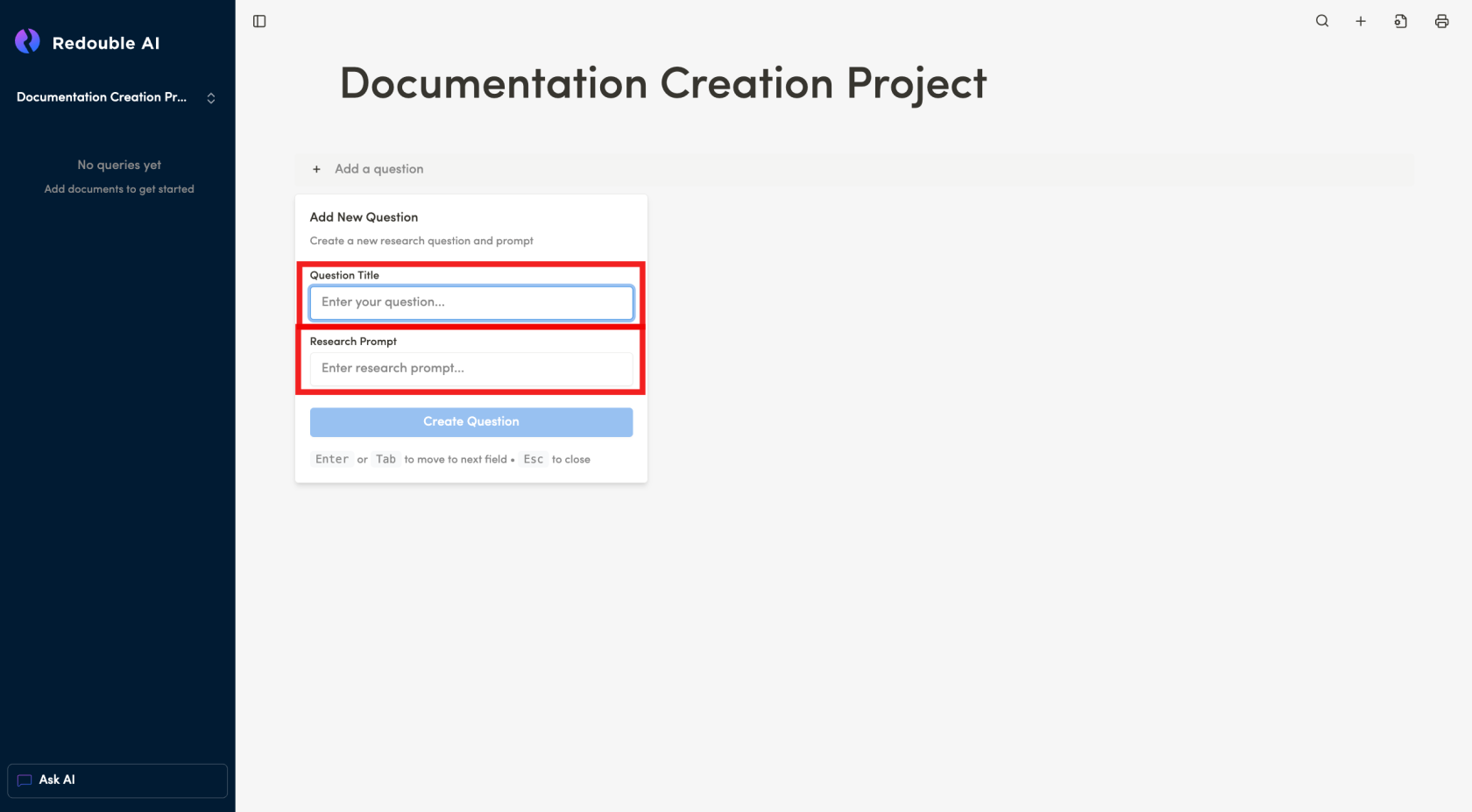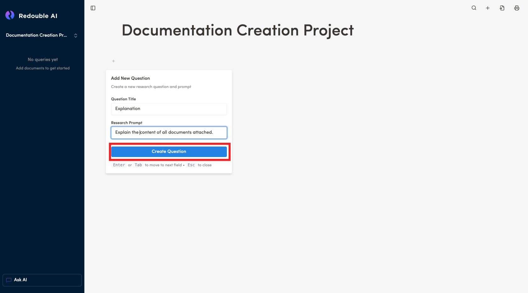 Result: The question is created and appears in the left sidebar. The system automatically starts analyzing the attached documents according to the specified prompt and generates an answer based on the content of the attached files.