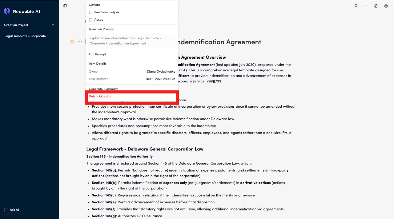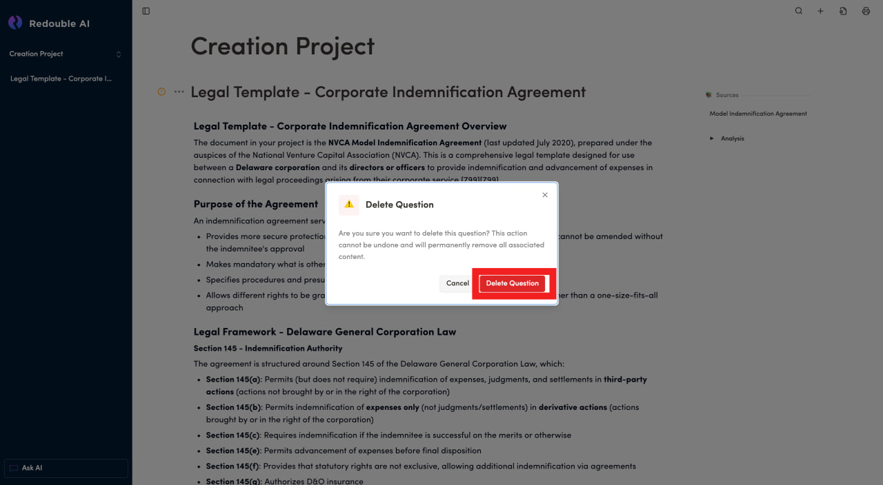 - Confirm that you would like to proceed with deleting the question in the dialog box