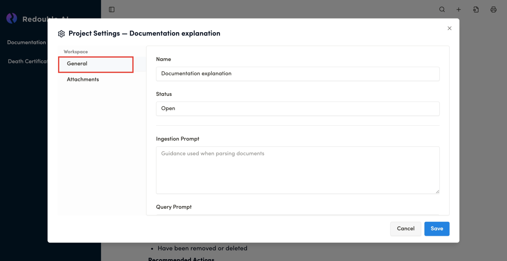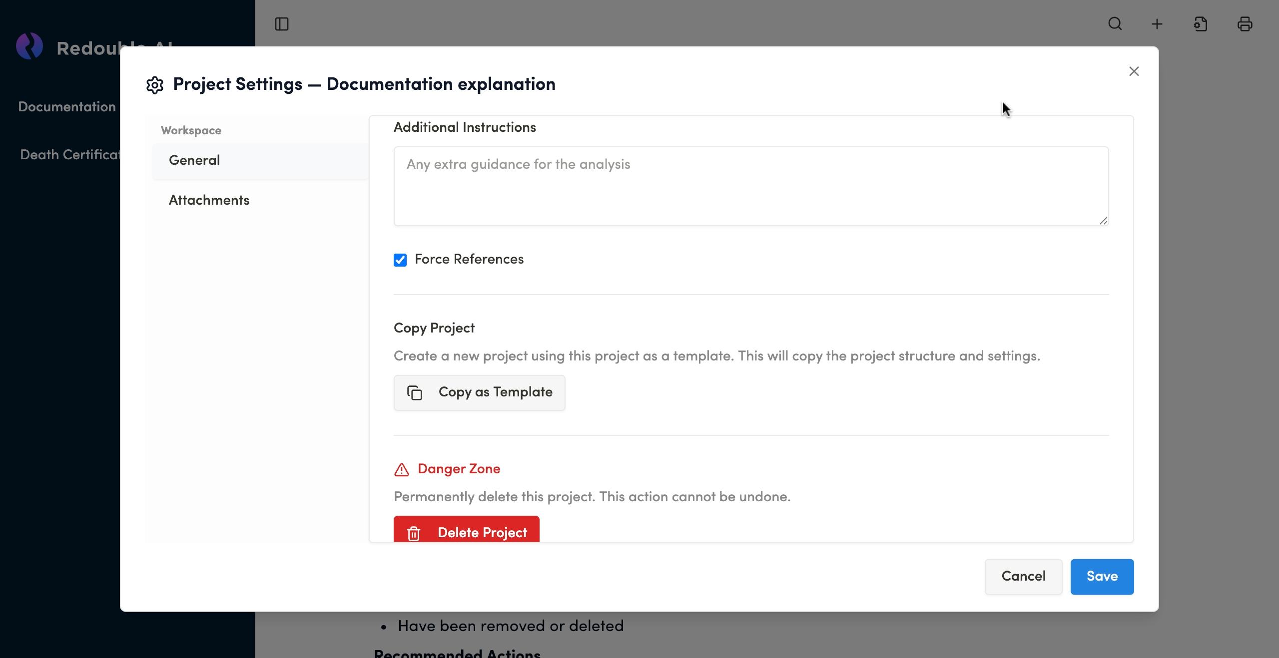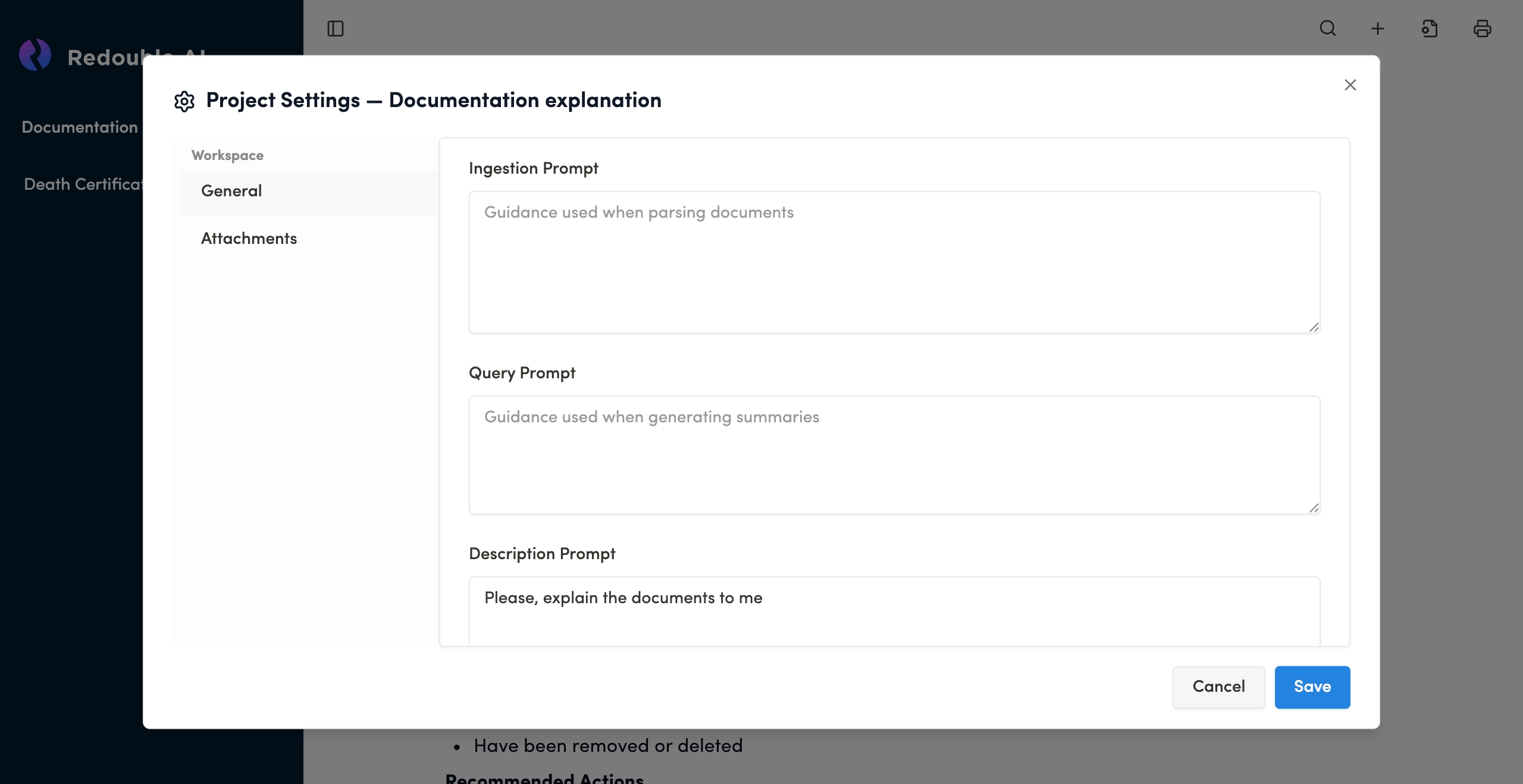 Purpose: Ensures that all AI-generated responses rely on input document previously uploaded into the project.