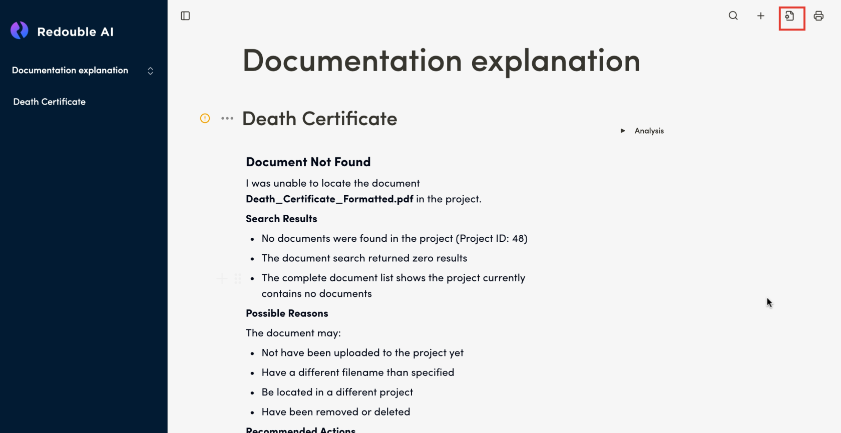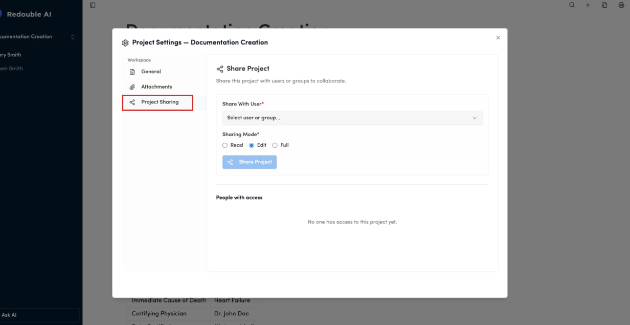 - Click on the "Document settings" icon and select "Project Sharing" in the "Workspace" list