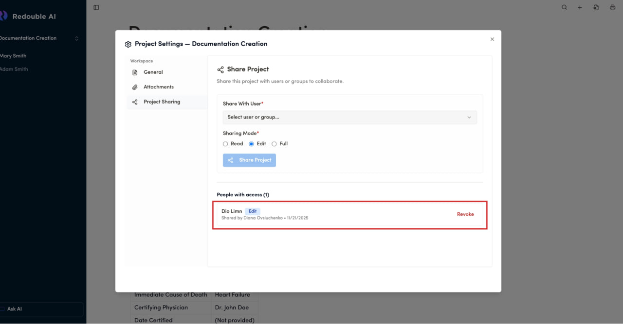 - Edit - Can view and modify project content (currently selected in your screenshot)