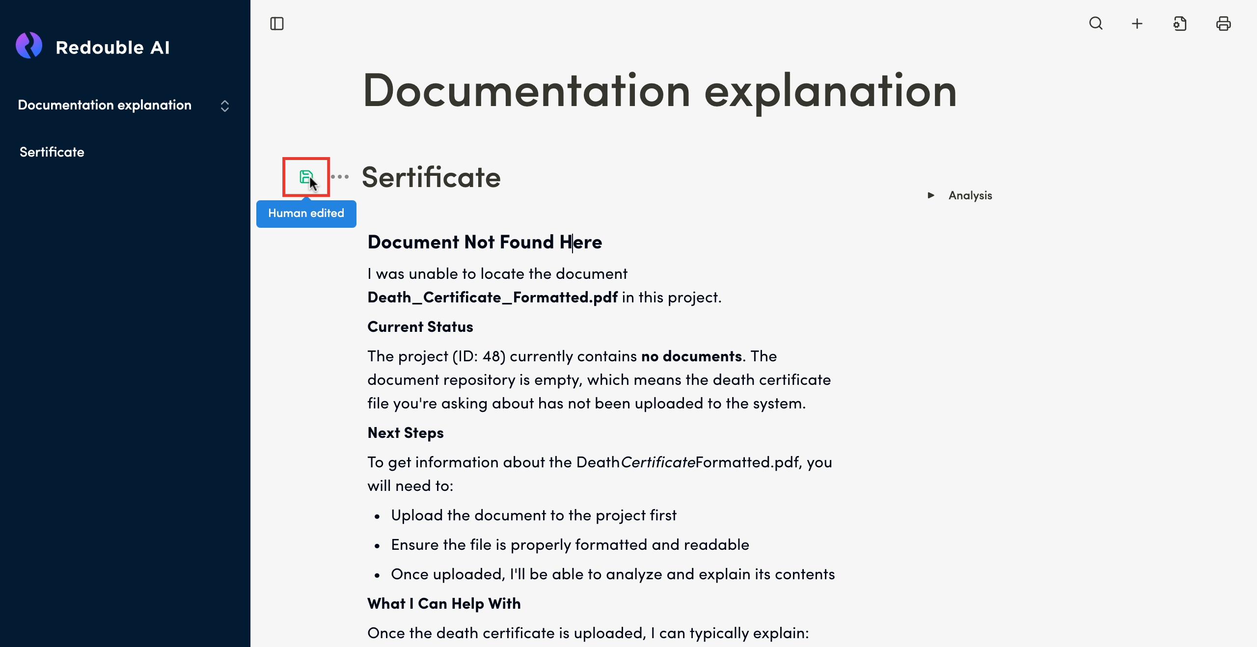 Purpose: This indicator appears after user manualy edits the content of the AI generated responce.