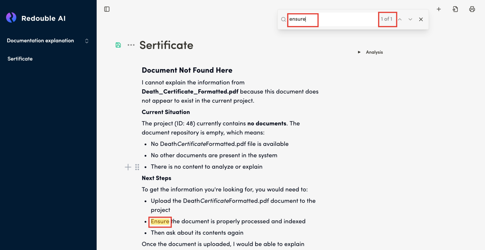 authorizedloggedininto the Redouble AI system AtYou have at least one project